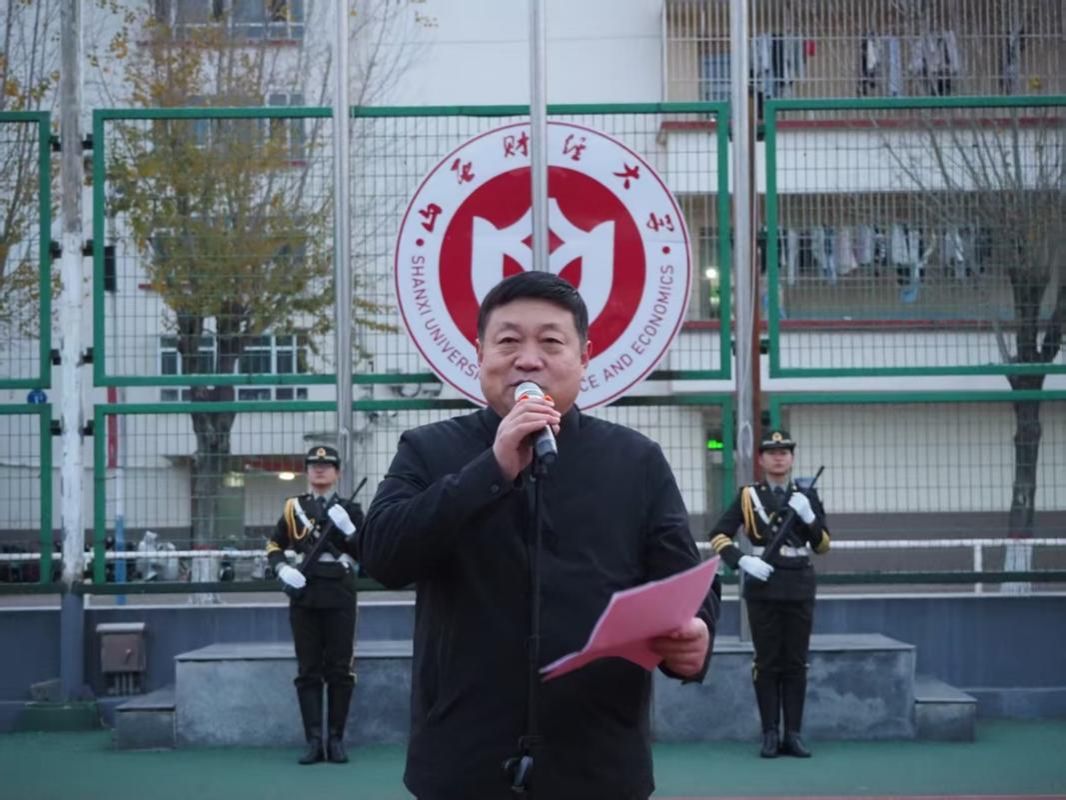 为纪念中国人民抗日战争暨世界反法西斯战争胜利 80 周年,缅怀革命先烈,弘扬伟大抗战精神,激发师生爱国热情与时代担当,11 月 17 日清晨,会计学院在坞城校区体育场举行升国旗仪式,学院领导班子、全体辅导员及在校学生共同参与。