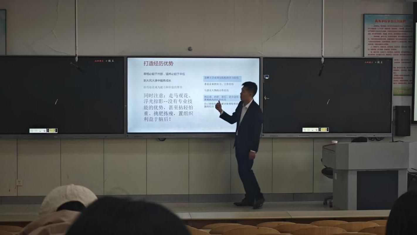 互动交流环节,同学们围绕银行数字化转型对会计岗位的影响、校园期间技能提升路径等问题踊跃提问。王煜欧助理结合自身从业经验,逐一细致解答,并分享了工行山西分行在人才培养中的“敏捷创新团队”建设模式与职业发展通道,为学子提供了兼具实操性与前瞻性的指导。