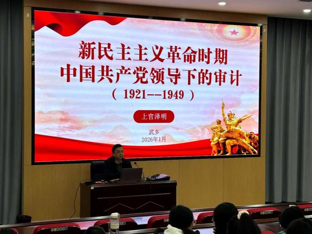 1月19日晚,上官泽明教授带来一场别开生面的红色审计专题讲座,为学子们搭建起专业与红色历史的桥梁。从1923年安源路矿工人俱乐部的审查部,到土地革命时期的《审计条例》,再到抗战时期各根据地的审计机构建设,萧克、吕正操等军政要人兼任审计领导的往事,让同学们了解到新民主主义革命时期审计工作的发展脉络,更深刻认识到审计工作在保障革命胜利、坚守廉洁底线中的重要使命。专业学习与红色历史之间的桥梁,就此贯通。
