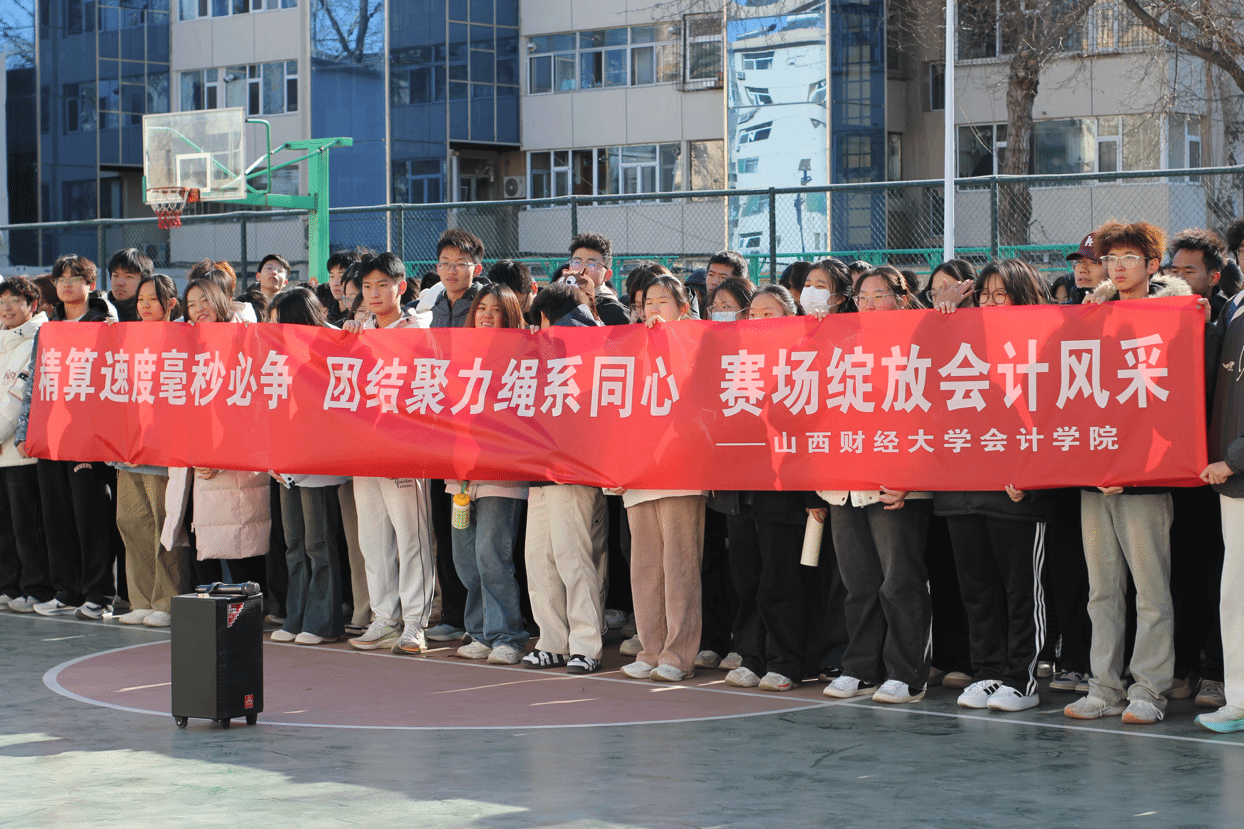 为提高班级凝聚力,提升学生运动意识与身体素质,12月2日,会计学院和博雅学院联合举办的,以“精算速度毫秒必争,团结聚力绳系同心,赛场绽放会计风采”为主题的体育活动在迎泽校区田径场拉开帷幕。