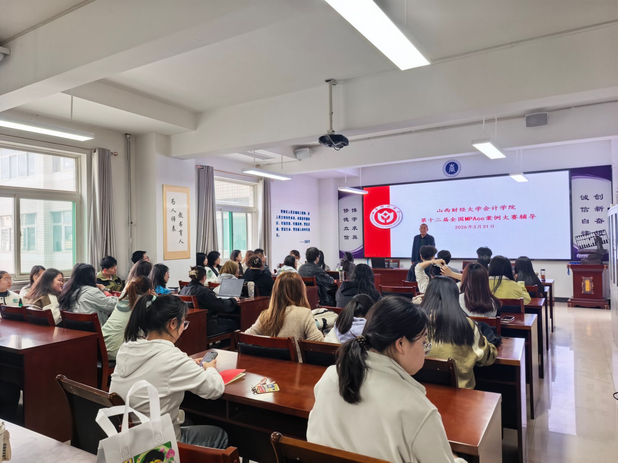 2026年3月31日,山西财经大学会计学院在大会议室举行第十二届全国MPAcc案例大赛辅导会,150余名师生参加了辅导会。辅导会邀请了学校实验中心副主任郭宗文老师和会计学院王东升老师做专题辅导。在辅导会中,郭宗文老师围绕历届案例大赛的题目、参赛成绩、案例大赛的宗旨与参赛情况以及本届案例大赛材料解读和案例分析报告写作等方面进行了深入指导。王东升老师着重从案例报告的写作、案例问题的回答以及案例报告评分规则等方面进行了深度讲解。本次案例大赛辅导会提升了师生对MPAcc案例竞赛的认识,更好地掌握了案例报告的写作技巧,同时对案例中所涉及的数据资产等专业知识有了更好的理解。